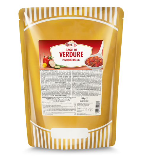 Sugo pronto all’uso a base di pomodoro, melanzane, zucchine, cipolle, carote, peperoni rossi e gialli, fagiolini e olio d’oliva. Grazie alla sua ricchezza di ingredienti e alla consistenza corposa, è un jolly in cucina: condimento di primi piatti a base di pasta o riso, farcitura di pizze e focacce, crostini, base per la preparazione di polpette con aggiunta di carne o pane per la versione vegetariana.