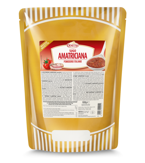 Sugo pronto all’uso a base di pomodoro, guanciale di suino, piante aromatiche e olio d’oliva. Condimento famoso per il suo sapore intenso e deciso, derivante dall’unione di pochi ma fondamentali ingredienti, è ideale per condire la pasta ma, può essere utilizzato anche per la preparazione di scaloppine, gustosi crostini e pizze in teglia.