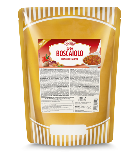 Sugo pronto all’uso a base di pomodoro, funghi porcini, funghi pinaroli, piselli, speck olio d’oliva, cipolla. La sua consistenza lo rende ideale per mantecare e legarsi a diversi formati di pasta sia corta che lunga, ottimo per il condimento di gnocchi o polenta.