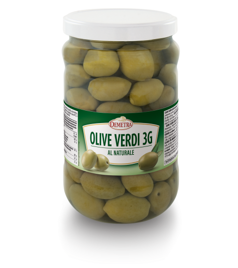 Selected green olives preserved in lightly salted water. With a fresh and intense flavour, these are suitable for all bar and kitchen uses: cocktails, salads, quick snacks, hors d'œuvres and savoury pastries.